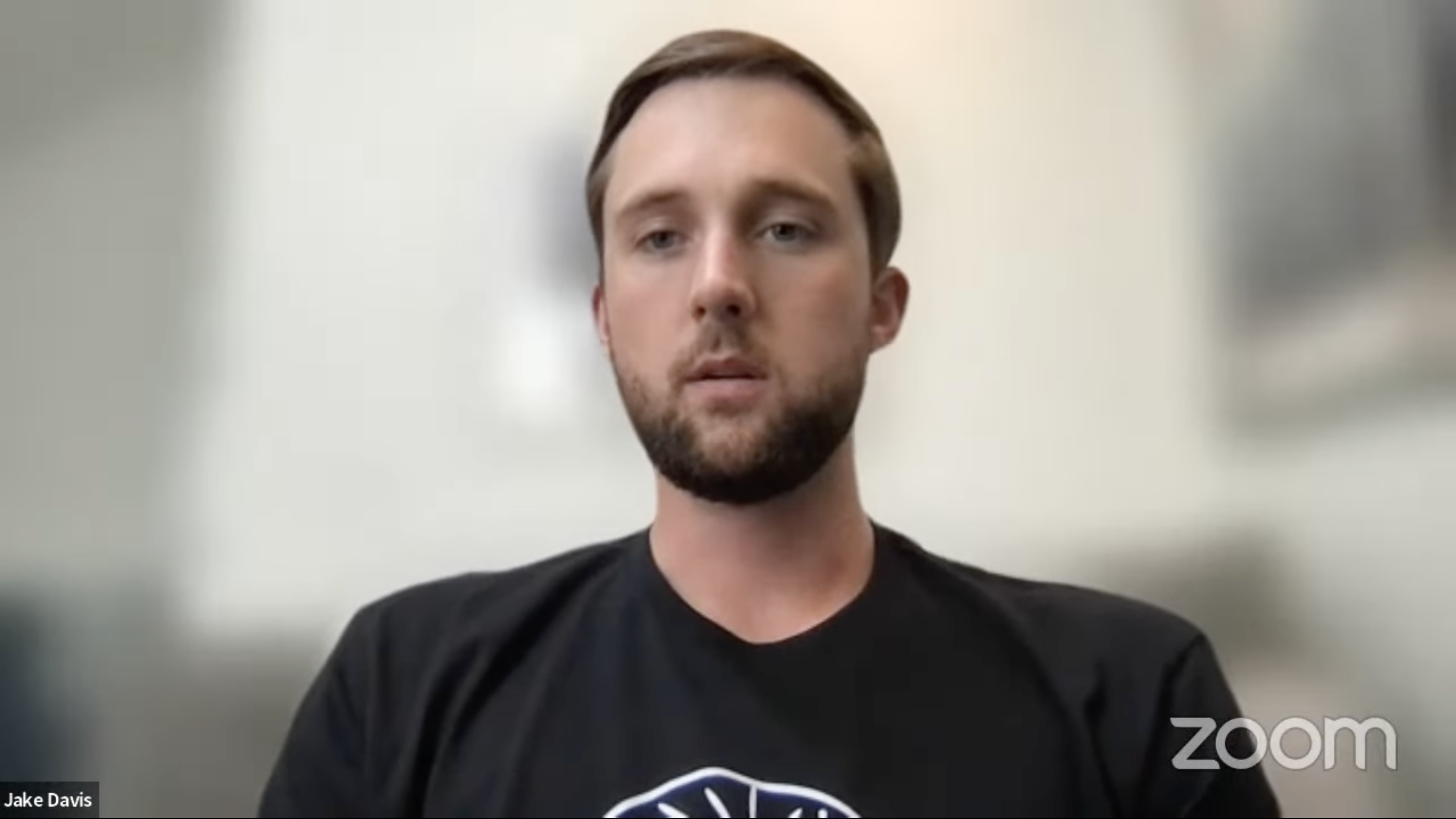 Still of Jake Davis in conversation with Dr. Bob Jacobs