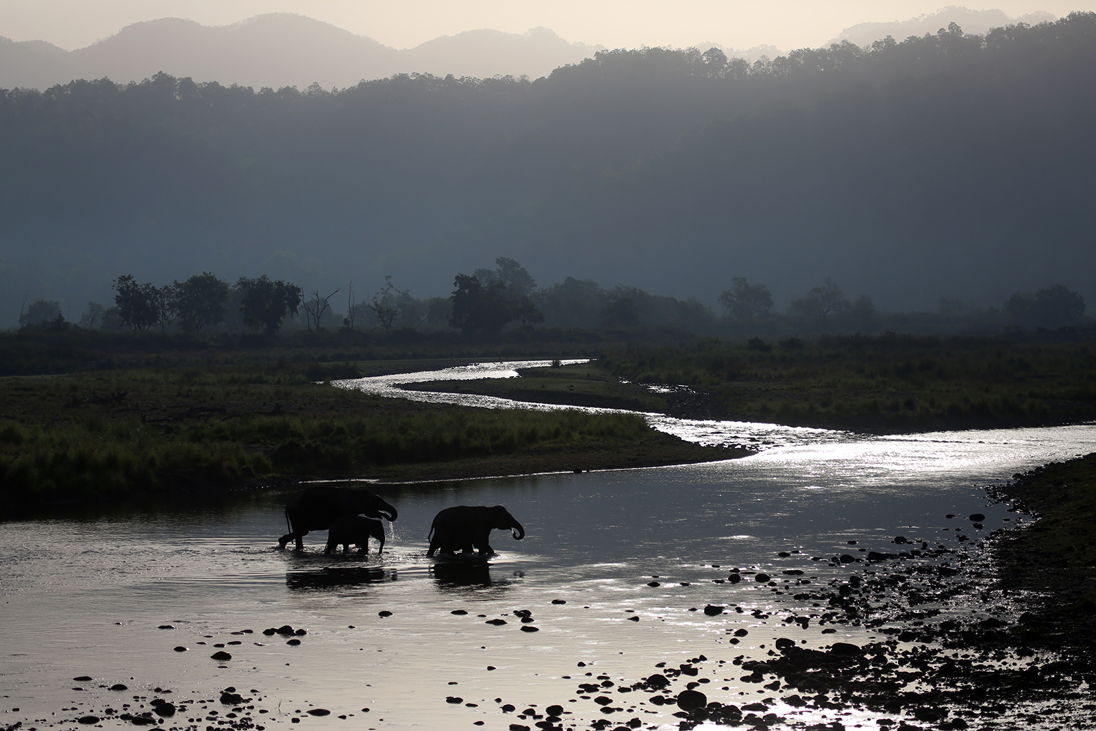 Elephants bathing in a river in India.